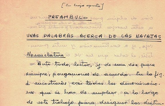 Navajas y DaltonismoManuscrito de su primer libro.